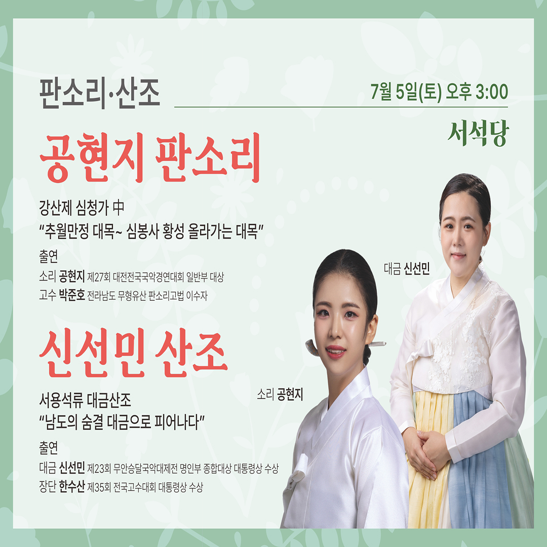 ■ 공연명: 2025 토요상설 – 판소리, 산조